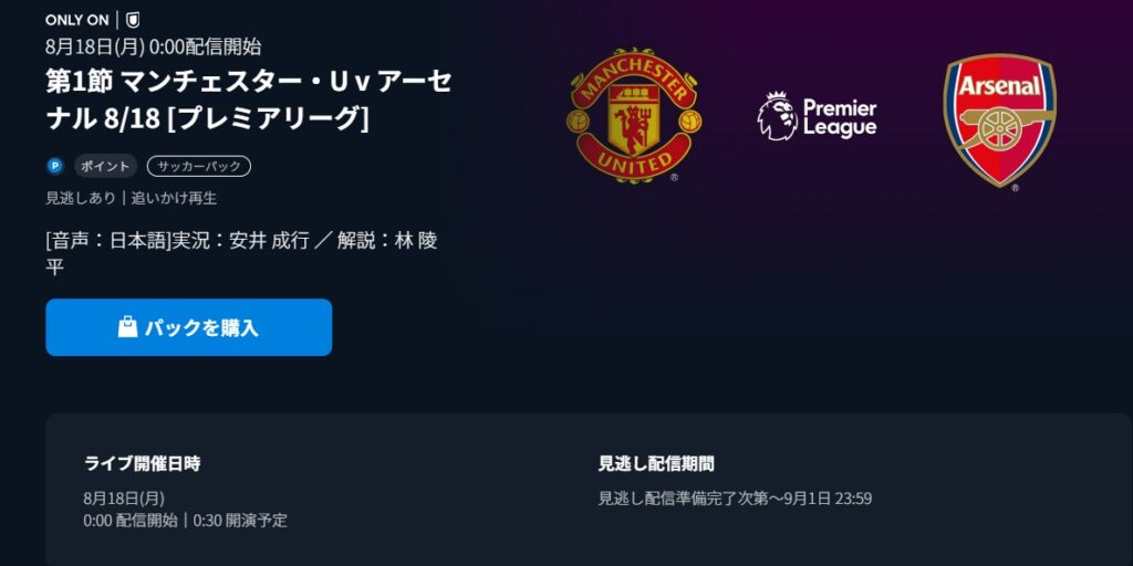 なお、プレミアリーグの視聴は月額2,600円(税込)の「U-NEXTサッカーパック」の購入が必要です。